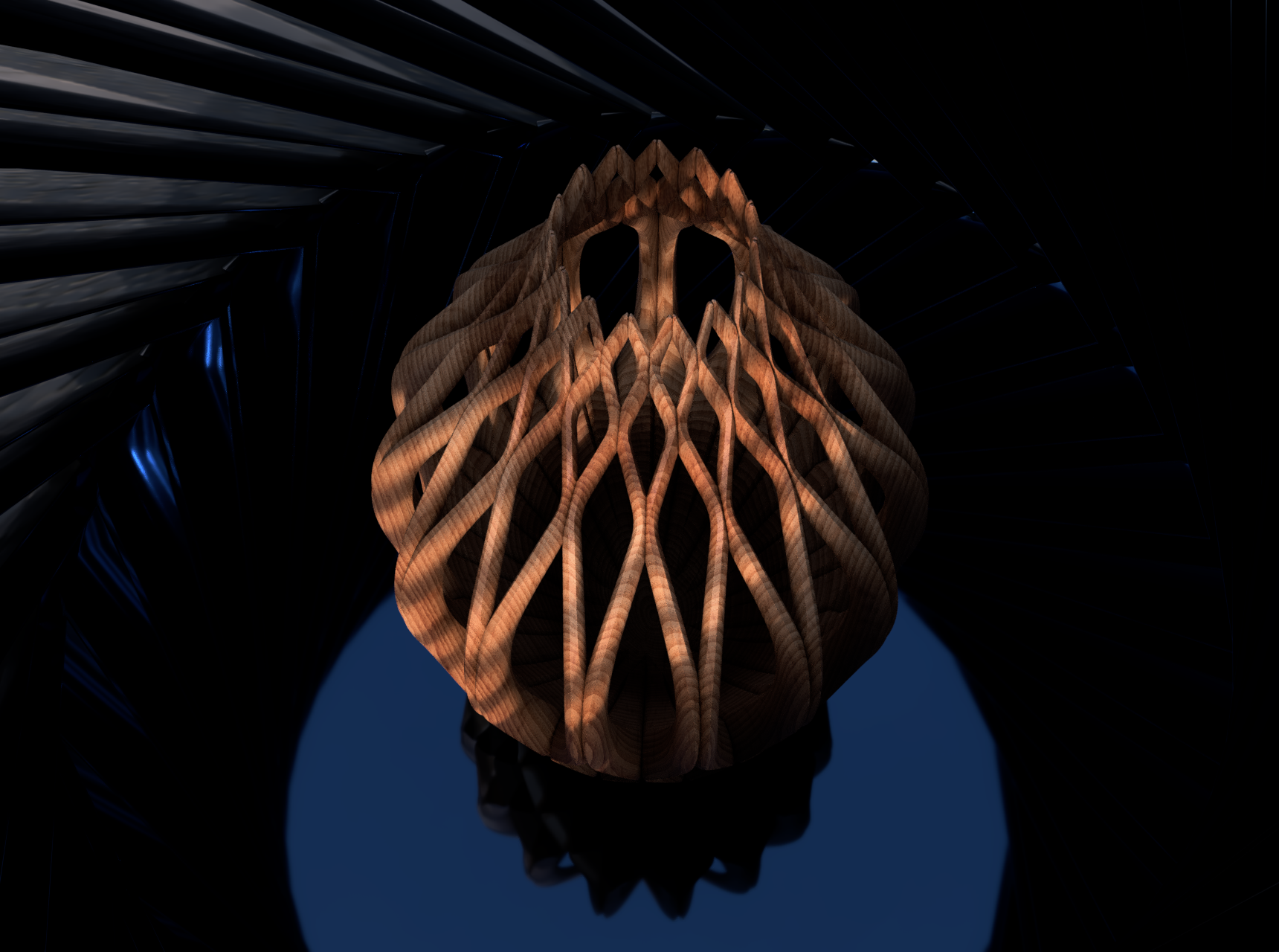 One of my longest running projects, I created this lamp to mimic the fluttering, lambent ambiance of fire. The cage-like enclosure is designed to cast dancing shadows around a room, and the LED array at its heart is driven by a custom cellular automaton I developed from scratch. The lamp is adjustable both in absolute brightness and in flame ‘consistency’ or ‘solidity’, meaning the amplitude of the light’s waver can be adjusted to suit preference.